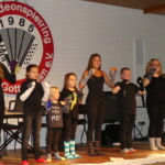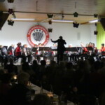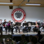 Zum Abschluss des Konzertabends spiele das Konzertorchester unter der Leitung von Petra Krumm. Eröffnet wurde der Auftritt mit bekannten Melodien von Glenn Miller. Als nächste Stücke folgte Jumpin‘ at the Woodside von Count Basie und The Pink Panther. Bei diesem Stück unterstütze Sebastian Arenz mit seinem Saxophon-Solo das Akkordeonorchester. Im Anschluss folgten mit Samba Negra und Ray Charles – In Concert zwei weitere flotte Stücke. Nach diesem tollen Auftritt des Konzertorchesters wunderte es nicht, dass das Publikum noch drei Zugaben forderte. Zu einer dieser Zugaben – Hoch Badnerland – kam auch unser Gastverein noch einmal auf die Bühne.